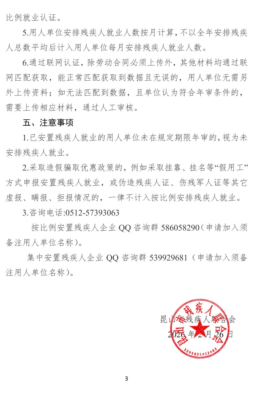 【昆山市】2026 年昆山市按比例安排残疾人就业年审公告